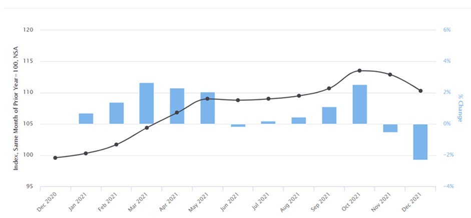 A dip in the rate of increases towards the end of 2021 has given some hope that wider global goods price inflation may abate in the months ahead. But the combination of the omicron wave of covid together with China’s firm zero-covid approach of rapid lockdowns on any spike in cases, may well have caused cost pressures to rise once again.