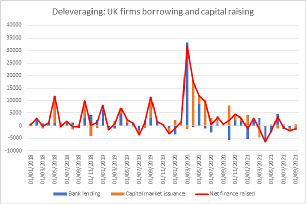 Big Tech is an unusual example but not entirely atypical. British firms borrowed heavily, at generous terms, as the pandemic struck and government backed cheap loans became available but have deleveraged their balance sheets over the course of 2021.