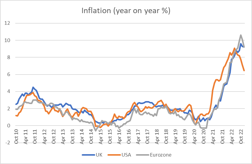 Assuming no further energy price shocks, inflation is likely to end the year closer to 5% than 10% across Europe and North America. Whilst welcome that is still around twice as high as central banks desire.