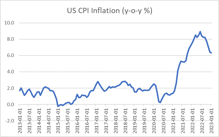 But recency bias is something to guard against. Whilst they may be lower than a few months ago, US inflation at 6.4%, Eurozone at 8.5% and UK at 10.1% are all still at levels which would have been almost unimaginable just three years ago.