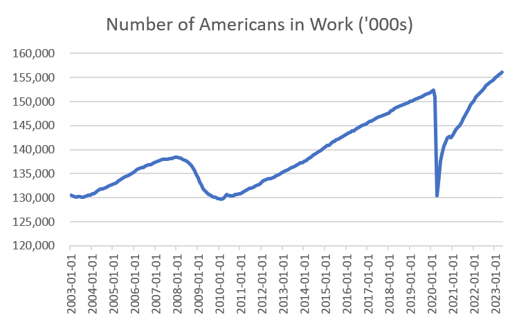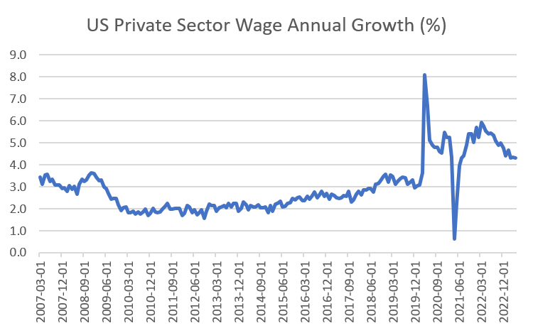 Finally there is the third sort of inflation – the one that has most worried central banks – that emerging from tight job markets and faster wage growth. In 2022 and early 2023, this has been the dominant sort of inflation in the US.