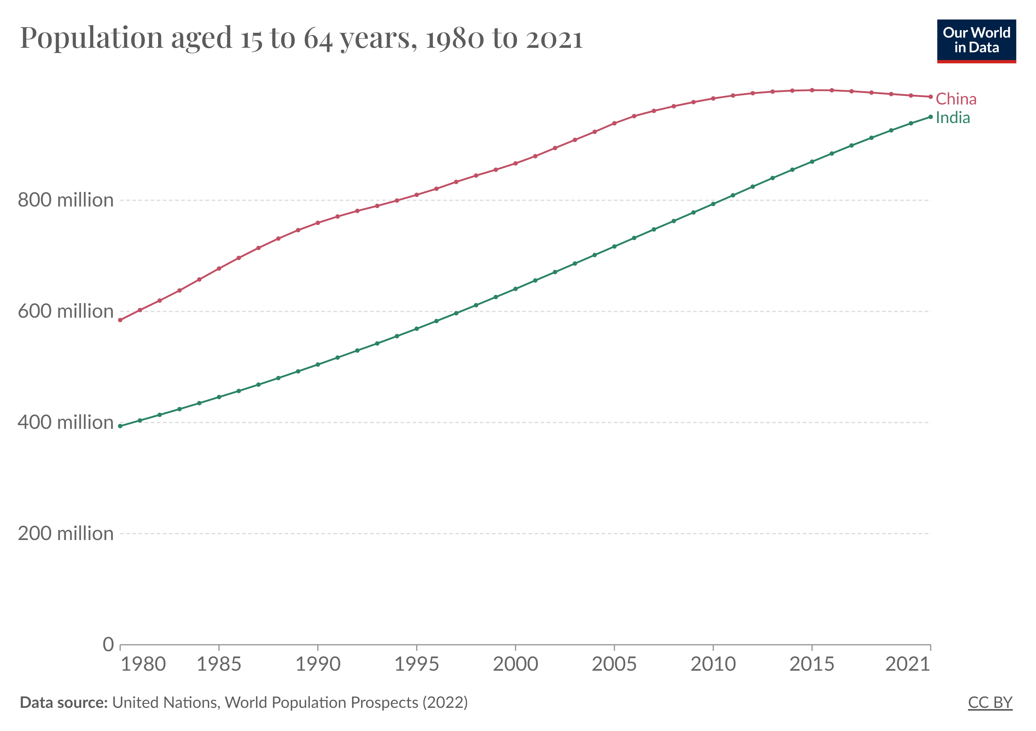 Take for example the number of working age workers in India and China as an example.