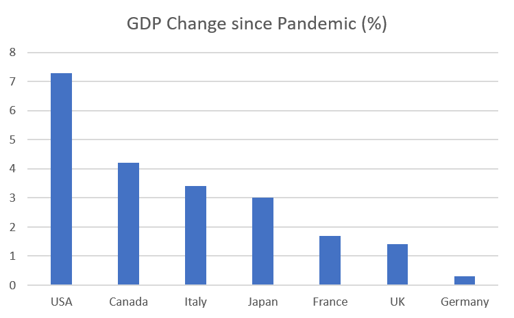Until September, the UK looked like a global outlier. Whilst the other six members of the G7 group of leading economies had all surpassed their pre-pandemic peaks – some by quite some way – the UK was, on that vintage of the numbers, stuck with an economy still smaller than it had been at the end of 2019. It was in a clear bottom place of the league tables. The revisions carried out in September rewrote recent economic history.