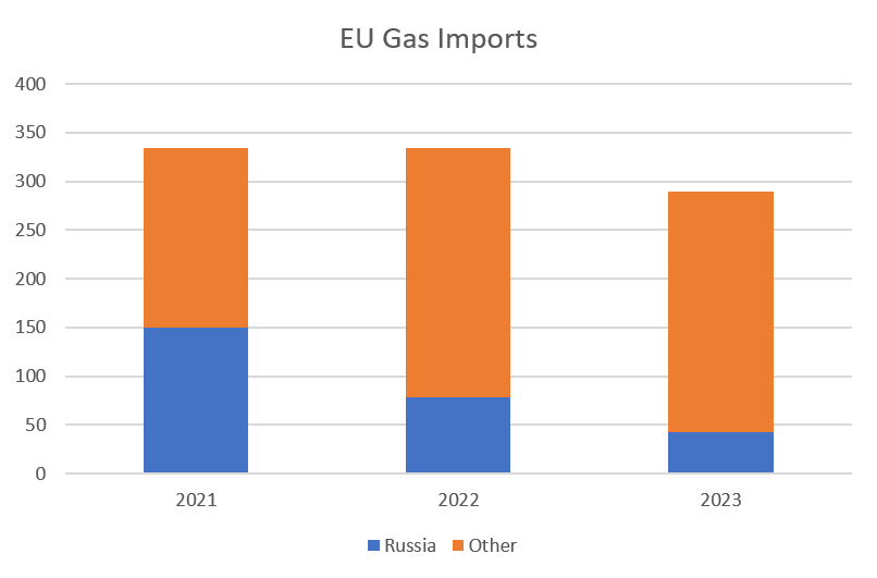 On the eve of the war, more than 40% of the European Union’s natural gas came from Russia. Last year, that had fallen closer to 15%.