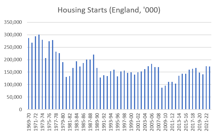 House building for example has fallen materially short of the government’s 200,000 a year target for years.