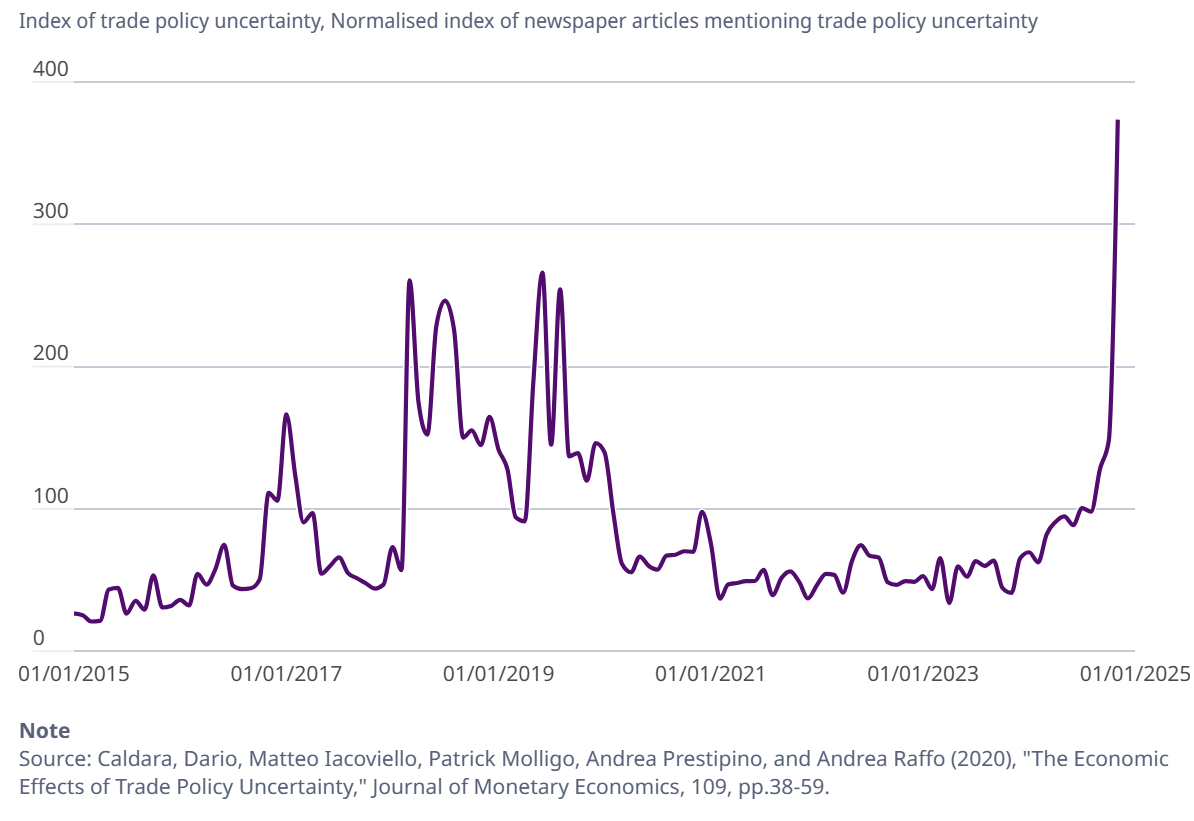 By this measure, trade policy uncertainty is higher than even in 2016 after Britain’s vote for Brexit and the first election of Donald Trump.
