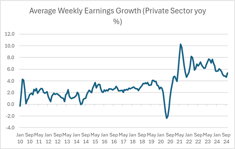 Private sector wage growth is running above the 5% level which the Bank of England considers compatible with hitting its inflation target in the medium term.