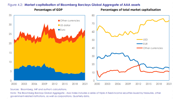 Perhaps higher German issuance and growing concerns over US stability might lead to new flows into reserves gradually diversifying away from North America, but it will take a long time for the role of the dollar to be seriously diminished.