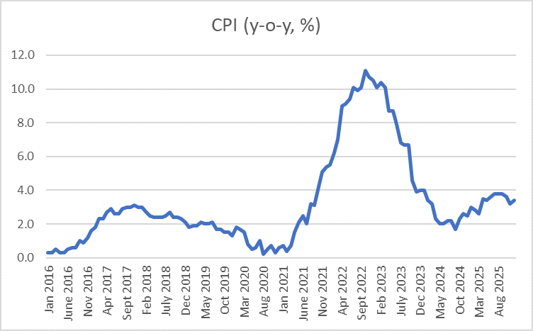 The Bank of England hopes to keep consumer price inflation (CPI) around 2.0%. The data at the end of 2025 shows it was running at 3.4%. Worryingly for the government, this is also the first increase in the rate since July.