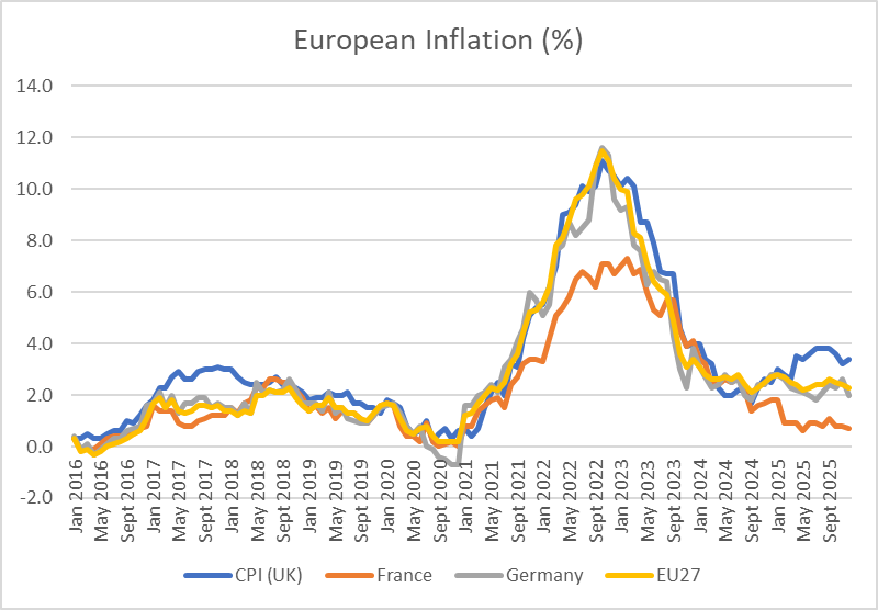 It is worth looking at British inflation rates in conjunction with those of other European economies.